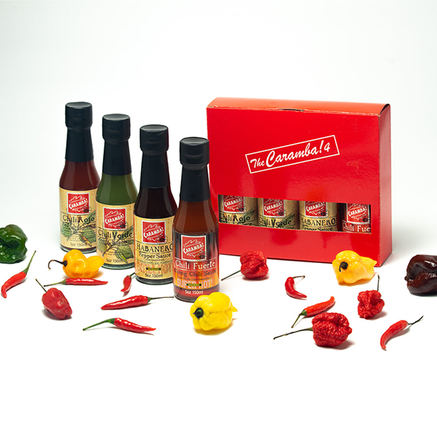 Complete your favorite Caramba Hot Sauces with this four-bottle package to spice up your dishes and satisfy your cravings anytime! Raging from spicy zest to piping hot, this special package is sure to please anyone who likes to keep their food tangy.